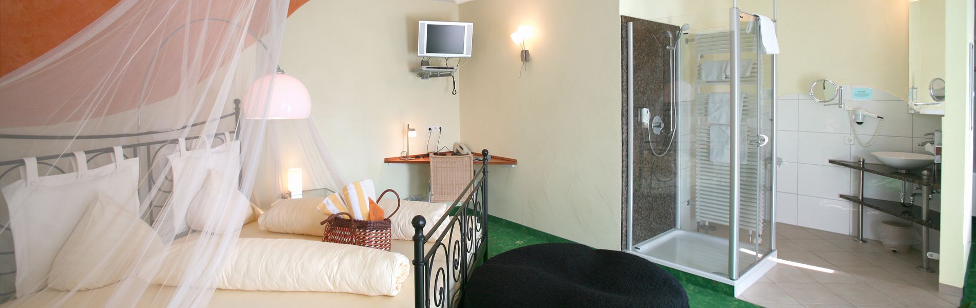 In two of the three hotel rooms, a balcony invites you to linger and allows you to take a first look at the Palatinate Forest.