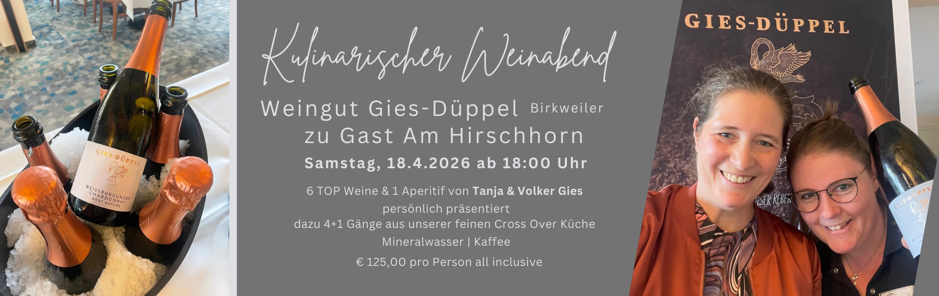 € 49,00 pro Person ( Kinder bis 8 J. frei, danach Staffelpreis)Weingut Gies-Düppel zu Gast Am Hirschhorn
